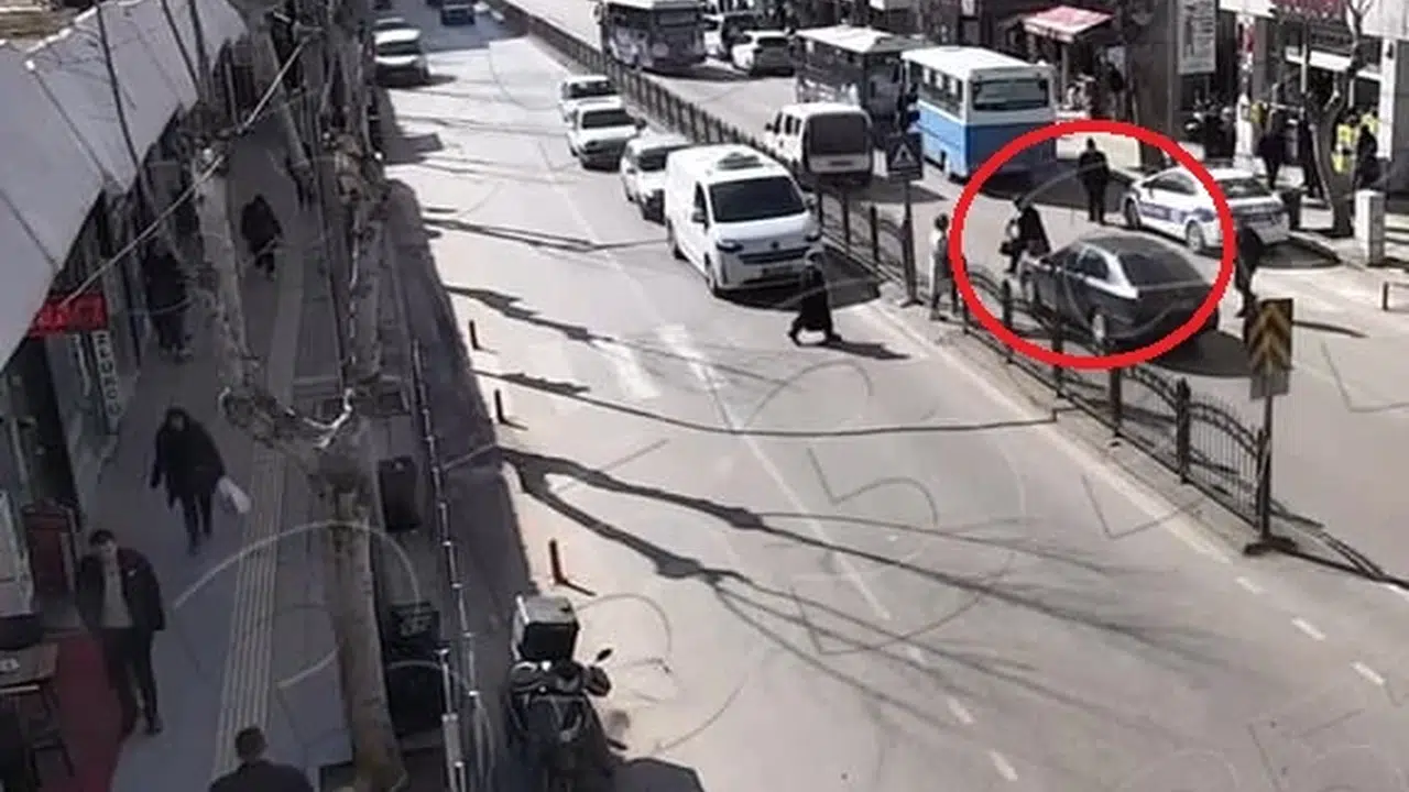 Yaya geçidinde otomobilin çarptığı kadın yaralandı; kaza kamerada