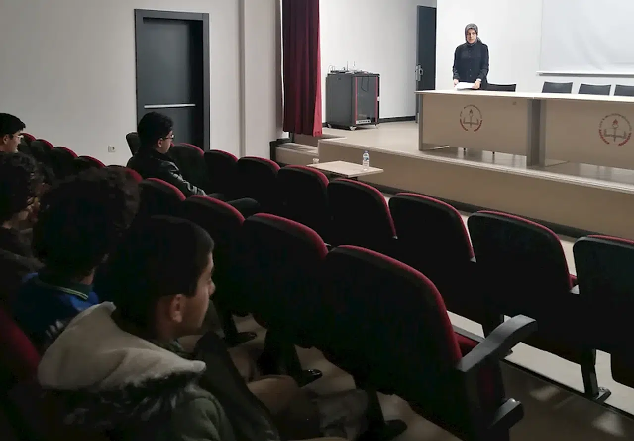 Samim SELÇUK/ HATAY, (DHA) - HATAY'ın Yayladağı ilçesinde Aile ve Sosyal Hizmetler İl Müdürlüğü ekipleri tarafından, Kadına Yönelik Şiddetle Mücadele Ulusal Eylem Planı doğrultusunda liseli öğrencilere seminer verildi.