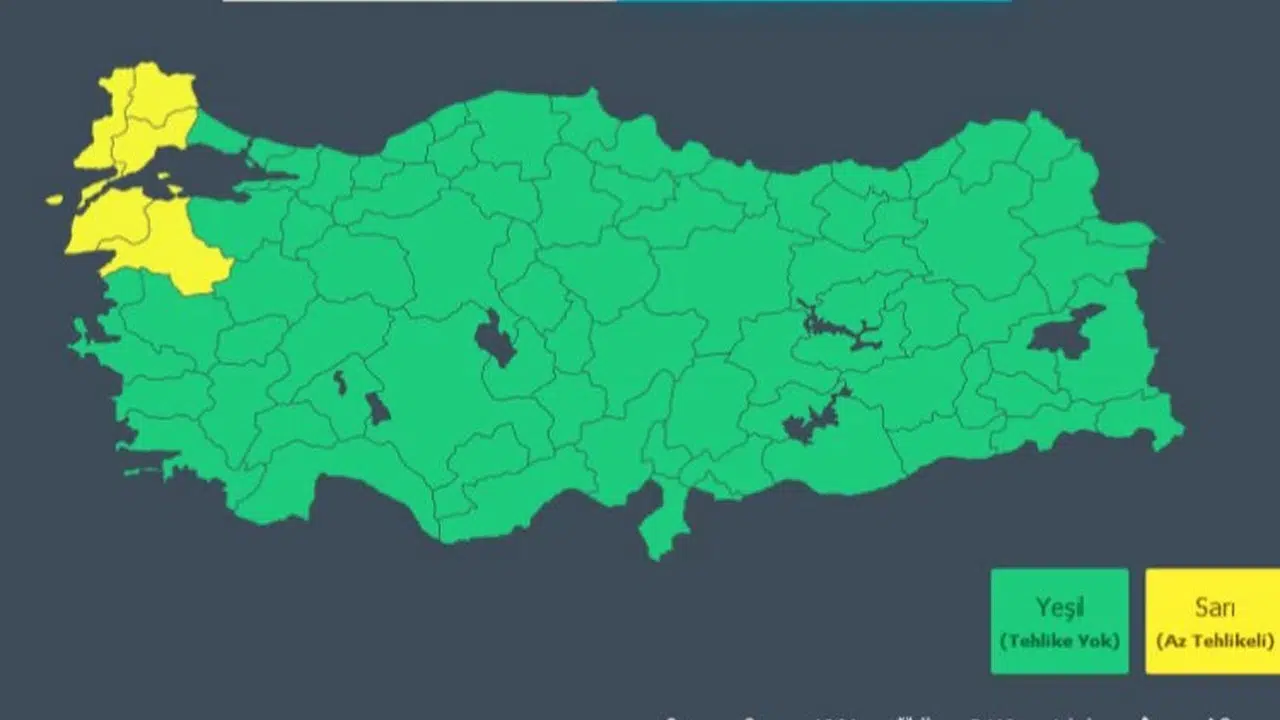 Meteoroloji Genel Müdürlüğü'nden yapılan açıklamaya göre, bu akşam saatlerinden itibaren Marmara'da görülecek sağanak ve gök gürültülü sağanakların Edirne, Kırklareli ve Tekirdağ'ın kuzey ve batı ilçeleri ile gece saatlerinden sonra Çanakkale çevreleri ve Balıkesir'in batı kıyı ilçelerinde yerel kuvvetli olması bekleniyor.
