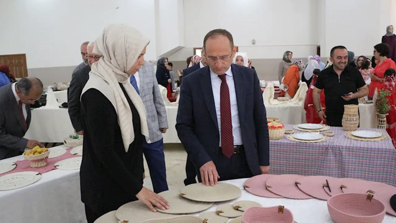 Kursiyerlerin el sanatları ve giyim alanında yaptığı ürünler, belediyenin düğün salonunda açılan sergide beğeniye sunuldu.