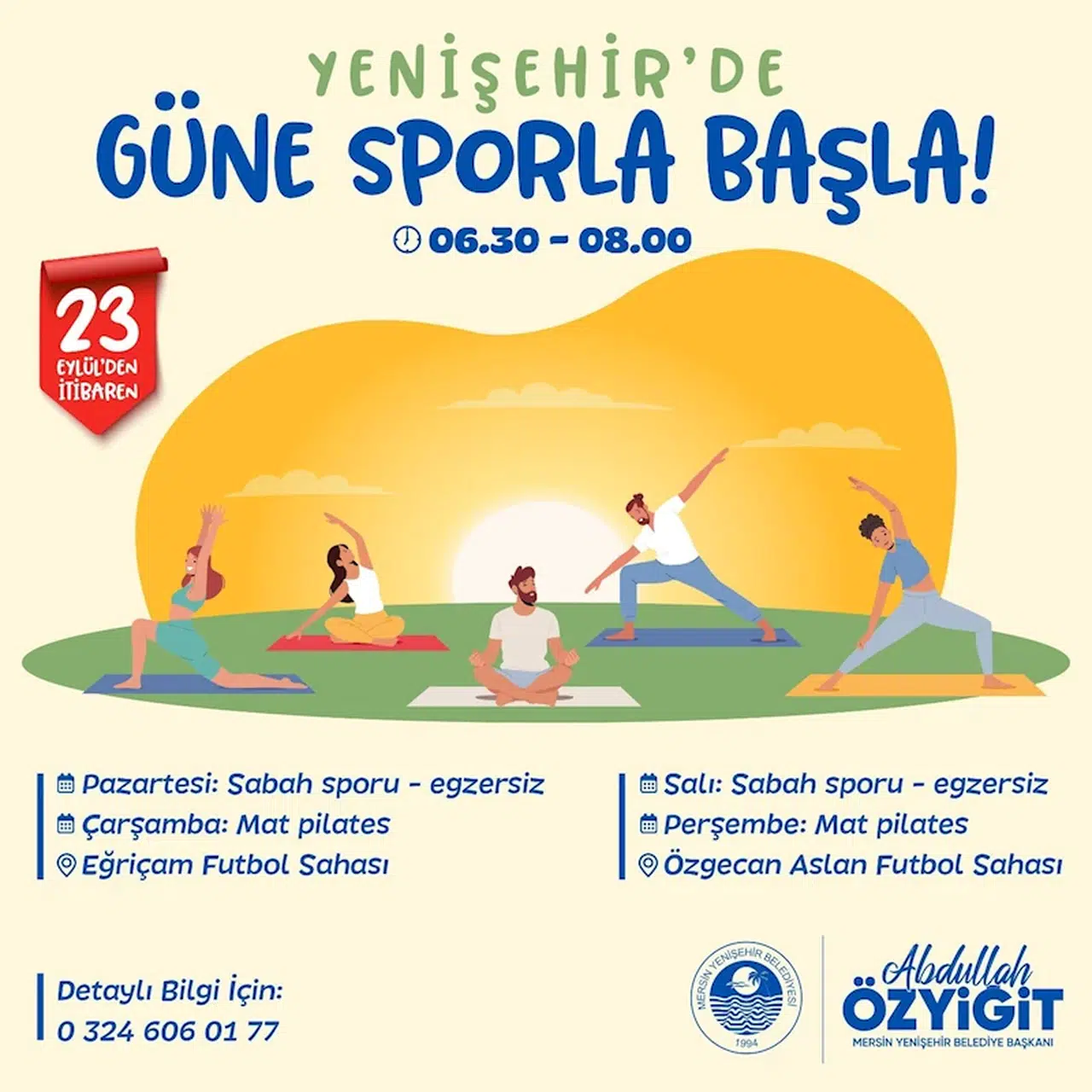 MERSİN, (DHA)- MERSİN’de Yenişehir Belediyesi, 23 Eylül'den itibaren vatandaşları sabahın erken saatlerinde sporla buluşturacak yeni bir program başlatıyor.