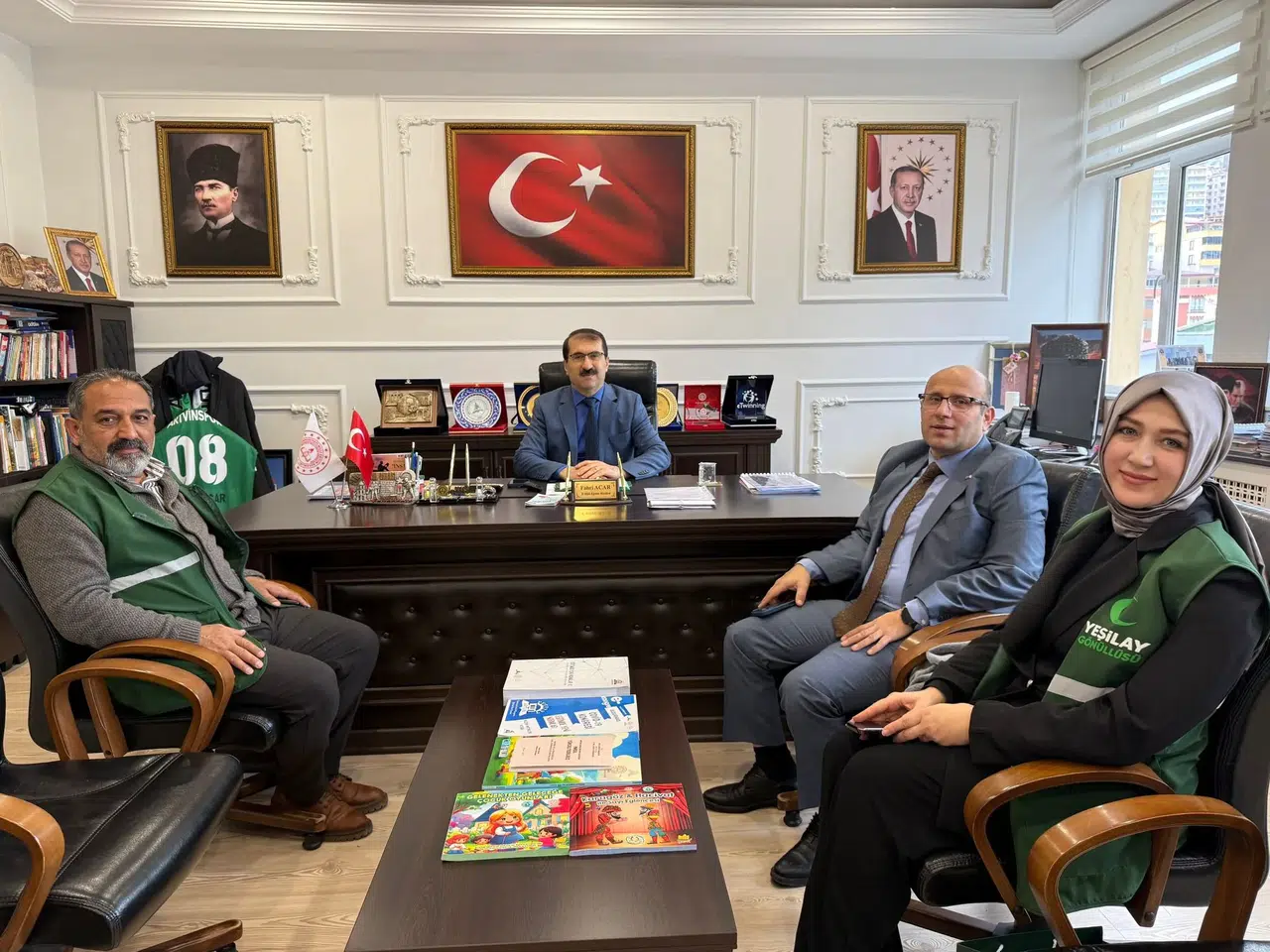 Yeşilay heyeti, nazik kabulleri ve misafirperverliği dolayısıyla İl Millî Eğitim Müdürü Fahri Acar’a teşekkür etti.