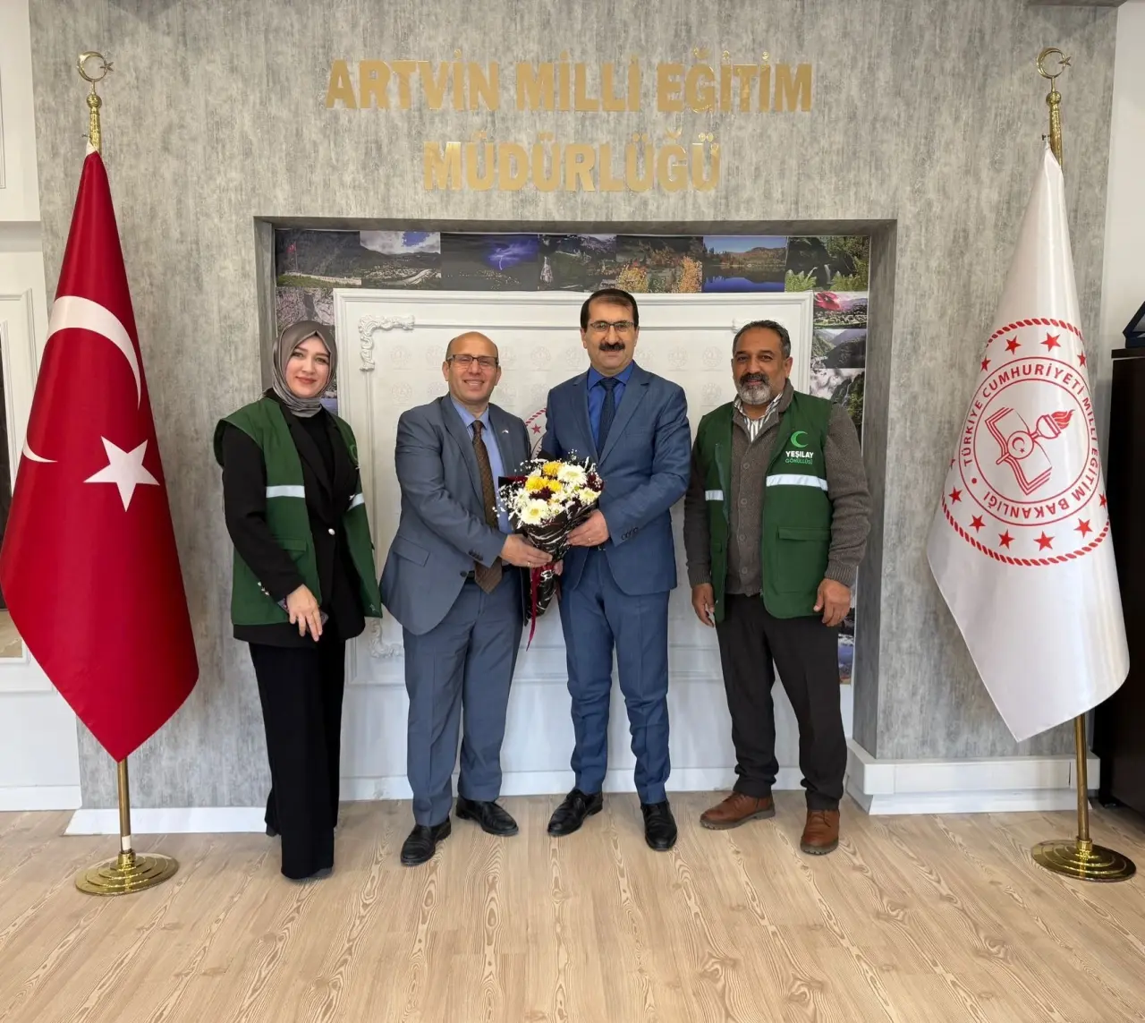 Yeşilay Artvin Şube Başkanı Erkan Navdar, Şube Başkan Yardımcısı Ayhan Çolak ve Şube Sorumlusu Mehtap Şentürk, İl Millî Eğitim Müdürü Fahri Acar’ı makamında ziyaret etti. Gerçekleşen görüşmede, Yeşilay’ın eğitim kurumlarında yürüttüğü önleyici ve farkındalık faaliyetleri ele alındı.