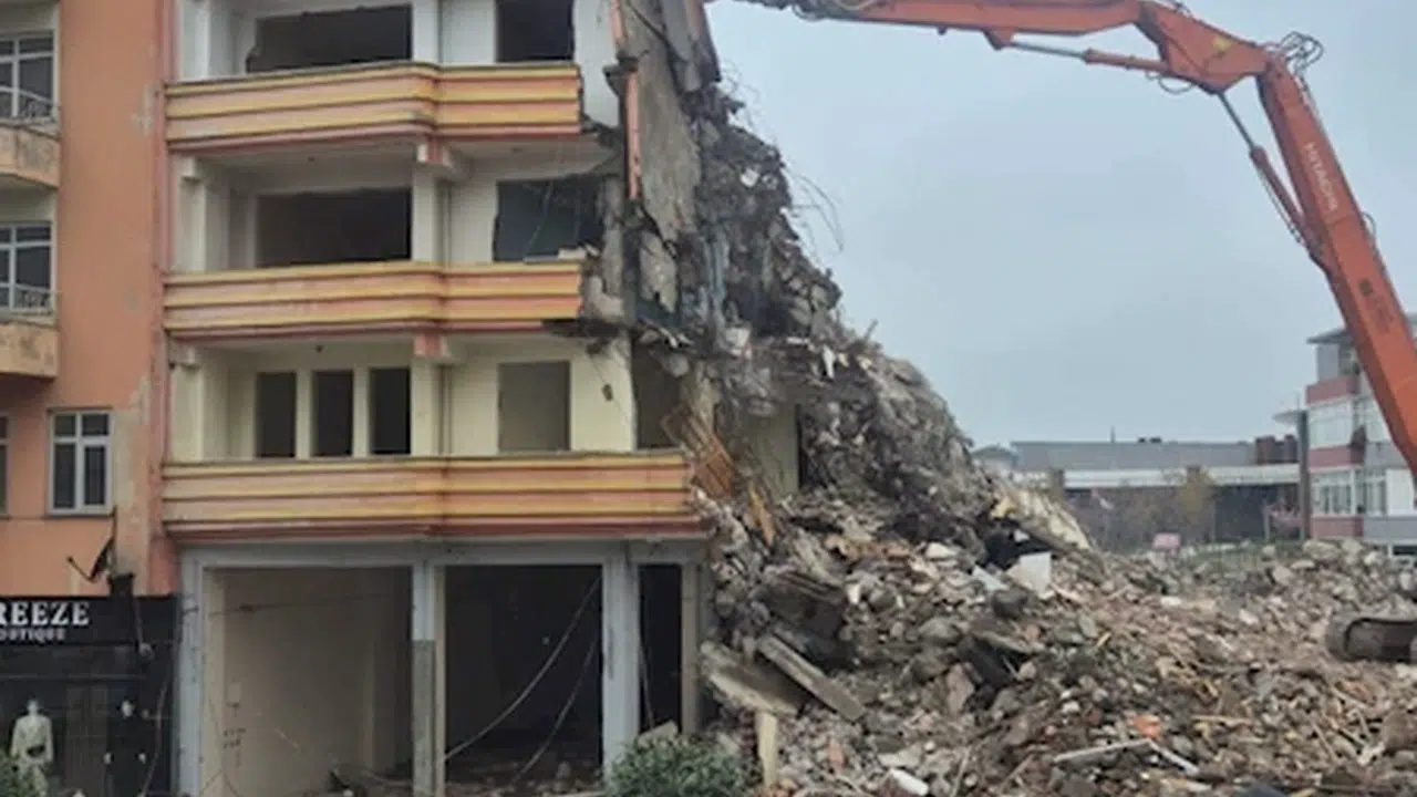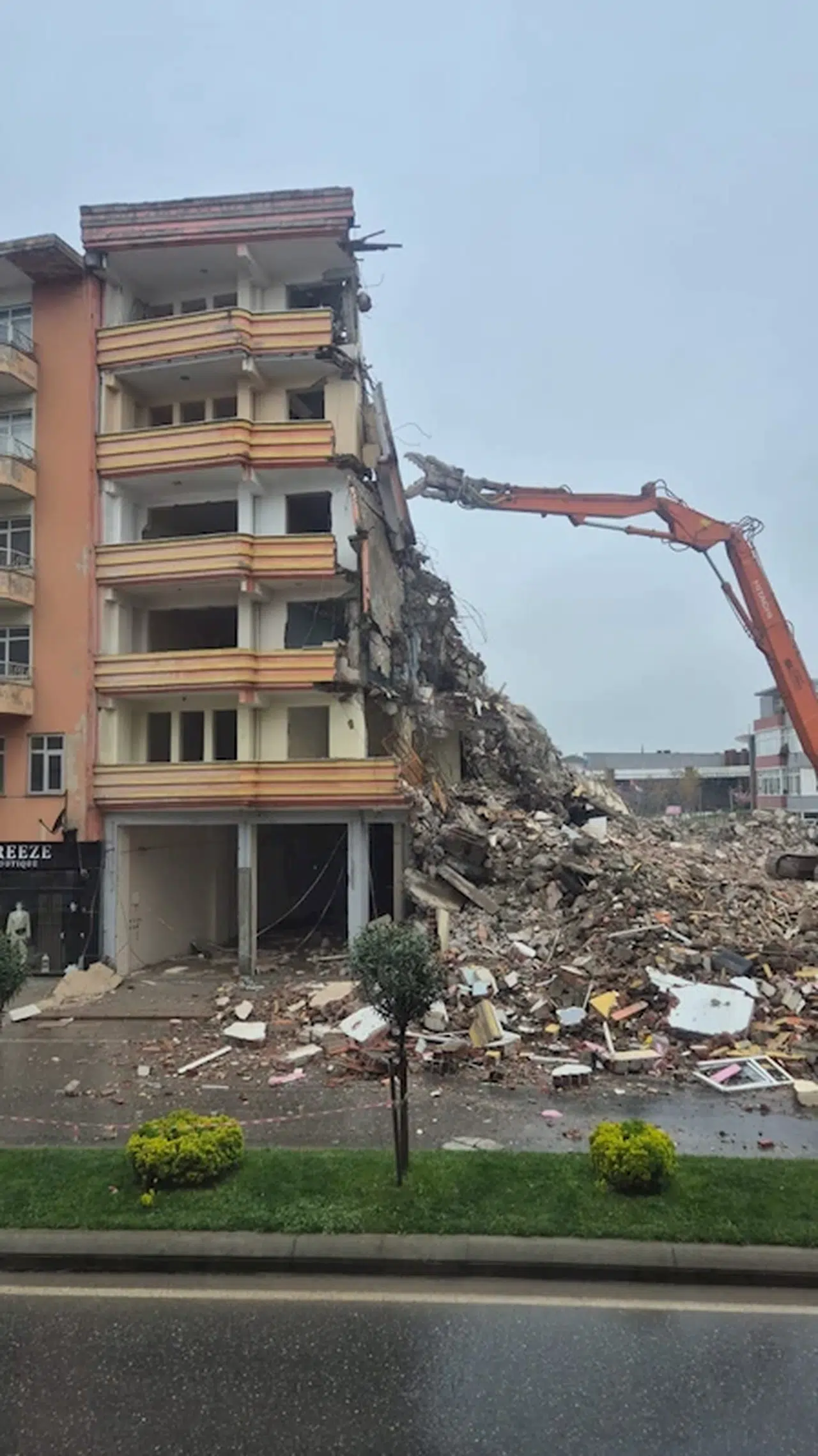Karasu İlçesi Plaj Caddesi’nde devam eden kentsel dönüşüm kapsamında 6 katlı bir binanın yıkımı için çalışma başlatıldı. Yıkım sırasında bina, iş makinesinin üzerine devrildi. Hasar gören iş makinesinin operatörü Kemal Yıldırım, şans eseri kazayı yara almadan atlattı. Yaşananlar, cep telefonuyla kayda alındı.