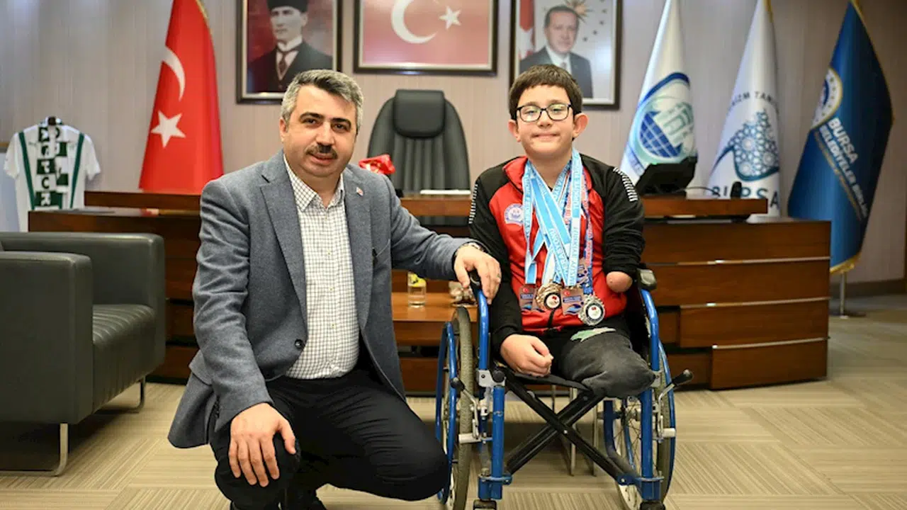 Yıldırım Belediye Başkanı Oktay Yılmaz, 10 yaşındaki para yüzücüyü ağırladı