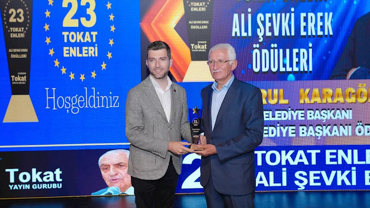 İbrahim UĞUR/TOKAT, (DHA)-TOKAT’ta bu yıl 23.’sü düzenlenen Tokat’ın Enleri Ali Şevki Erek Ödülleri’nde Erbaa Belediye Başkanı Ertuğrul Karagöl yılın başarılı belediye başkanı ödülü aldı.