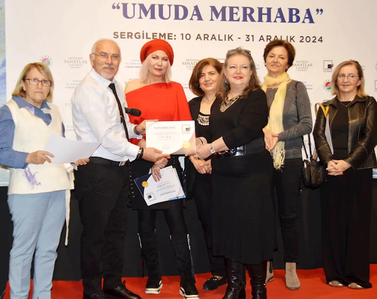 Yusuf DEMİR/ANTALYA, (DHA) - GÜZEL Sanatlar Derneği (GÜSAD) üyesi sanatçılar, 2024 yılı içinde çalıştıkları eserlerini 'Umuda Merhaba' adlı 'Yıl Sonu Karma Sergi'de sanatseverlerin beğenisine sundu.