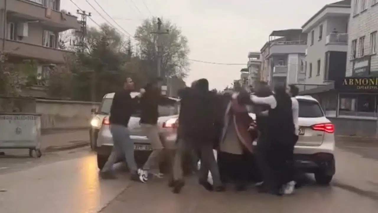 Yavuz YILMAZ/İNEGÖL (Bursa), (DHA)- BURSA’nın İnegöl ilçesinde trafikte iki sürücü arasında yol verme meselesi yüzünden çıkan yumruklu kavgada Bilal K. (30) yaralandı. Kavga anı, cep telefonu kamerasıyla görüntülendi.