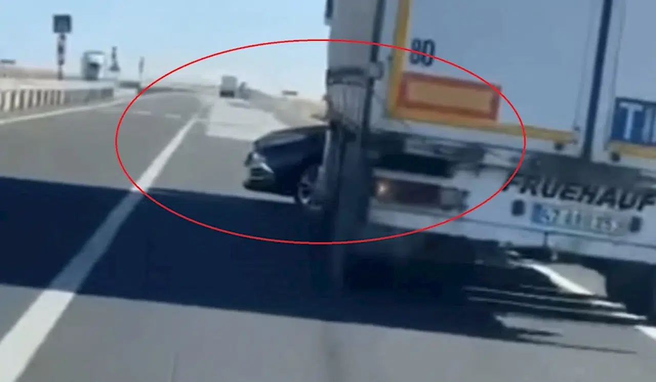 Olay, öğle saatlerinde, Uluslararası İpekyolu kırsal Esentepe Mahallesi'nde meydana geldi. Sol şeritte ilerleyen 47 AAB 253 TIR'ın sürücüsü, arkasındaki otomobile yol vermek için sağa geçmeye başladı. Otomobil de sağ şeride girip, TIR'ı geçmeye çalıştı. O sırada TIR’ın önüne giren otomobil, bir süre yatay şekilde sürüklendi. O anlar, başka bir sürücü tarafından cep telefonu kamerasıyla görüntülendi. Yaralananın olmadığı kaza sonrası her 2 araçta hasar oluştu. İddiaya göre, otomobildekiler inip, sürücüyü darbetti. İhbarla olay yerine sağlık, itfaiye ve polis ekipleri sevk edildi. TIR'ın sürücüsü, ifadesi alınmak üzere emniyete götürüldü. Kazayla ilgili inceleme başlatıldı. (DHA)