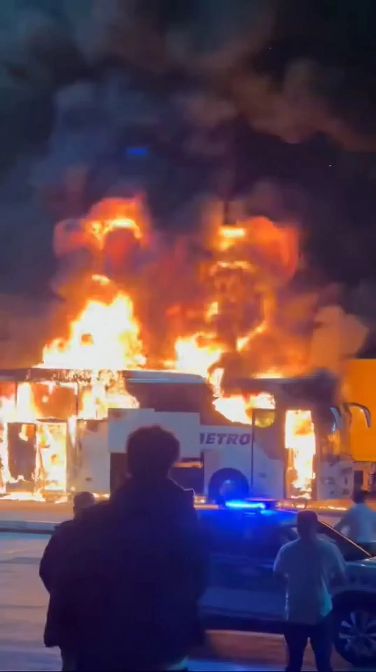 Nazım Özgün ERBULAN/KÖRFEZ, (Kocaeli), (DHA)- TEM Otoyolu Kocaeli'nin Körfez ilçesi geçişindeki dinlenme tesisinde duran şehirler arası yolcu otobüsü alev alev yandı. İtfaiyenin müdahalesiyle yangın söndürüldü ancak otobüs kullanılamaz hale geldi.