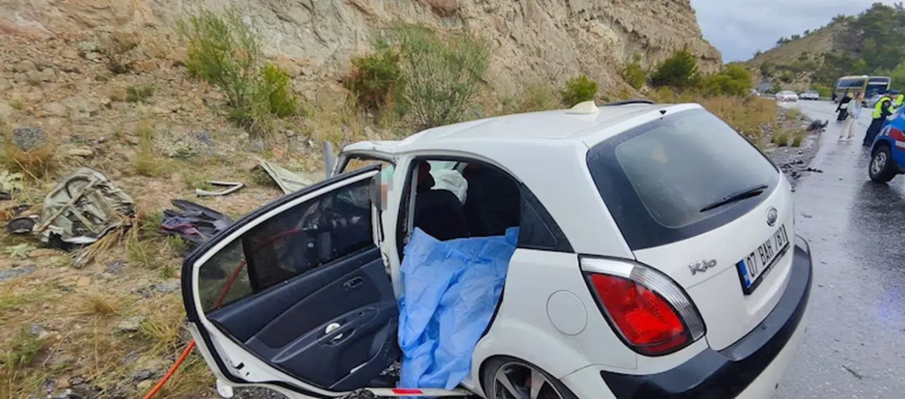 Kaza, saat 11.30 sıralarında D695 kara yolunda Manavgat ilçesine bağlı Taşkesiği Mahallesi mevkisinde meydana geldi. Hasan Yiğit'in (55) kullandığı 42 HC 731 plakalı Kontur firmasına ait yolcu otobüsü ile karşı yönden gelen Mesüt Özlemiş'in kullandığı 07 BAH 781 plakalı otomobil çarpıştı. Kazada, otomobil sürücüsü Mesüt Özlemiş ile yanındaki Leyla Özlemiş hayatını kaybetti. Aynı araçta bulunan Ummu Gülsüm Özlemiş (49), Kübra Özlemiş (21), Leyla Özlemiş (24) ve Süleyman Özlemiş (11) yaralandı. Yoldan geçen sürücülerin ihbarı üzerine kaza yerine çok sayıda jandarma ve sağlık ekibi sevk edildi. Yaralılar ilk müdahalelerin ardından ambulanslarla hastaneye kaldırıldı. Tedaviye alınan yaralıların hayati tehlikesinin bulunmadığı öğrenildi. Mesüt Özlemiş ve Leyla Özlemiş'in cenazeleri yapılan incelemenin ardından morga konuldu.