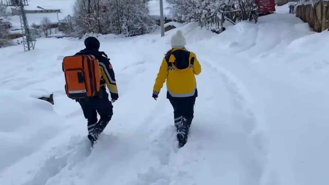 Kar yağışı nedeniyle çok sayıda köy yolunun ulaşıma kapandığı Muş'ta hastalara, paletli ambulansla müdahale ediliyor. Kent merkezine 40 kilometre uzaklıktaki Karabey köyünde 6 aylık bir bebeğin ateş şikayeti sonrası sağlık ekipleri yola çıktı. Kapalı yol nedeniyle köye paletli ambulans ile giden ekipler, bebeğe ilk müdahalede bulundu. Ekipler, daha sonra bebek ile annesini paletli ambulansa aldı. Bebek ile annesi daha sonra kara yolunda bekleyen ambulansa taşındı. Damar yolu açılan ve soğuk uygulama yapılan bebek, Muş Devlet Hastanesi'ne götürüldü. (DHA)