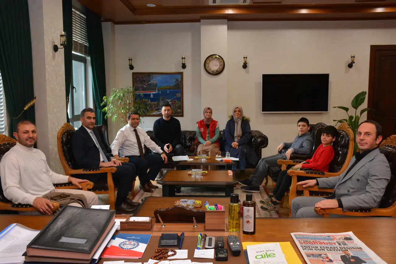 Yomra Gençlik ve Spor İlçe Müdürü Zülfü Güler, Gençlik Merkezi Müdürü Osman Atmaca ve Gençlik Merkezi üyesi Muhammed Eymen Sarı, Yomra Kaymakamı Oğuzhan Ocak’ı makamında ziyaret etti.
