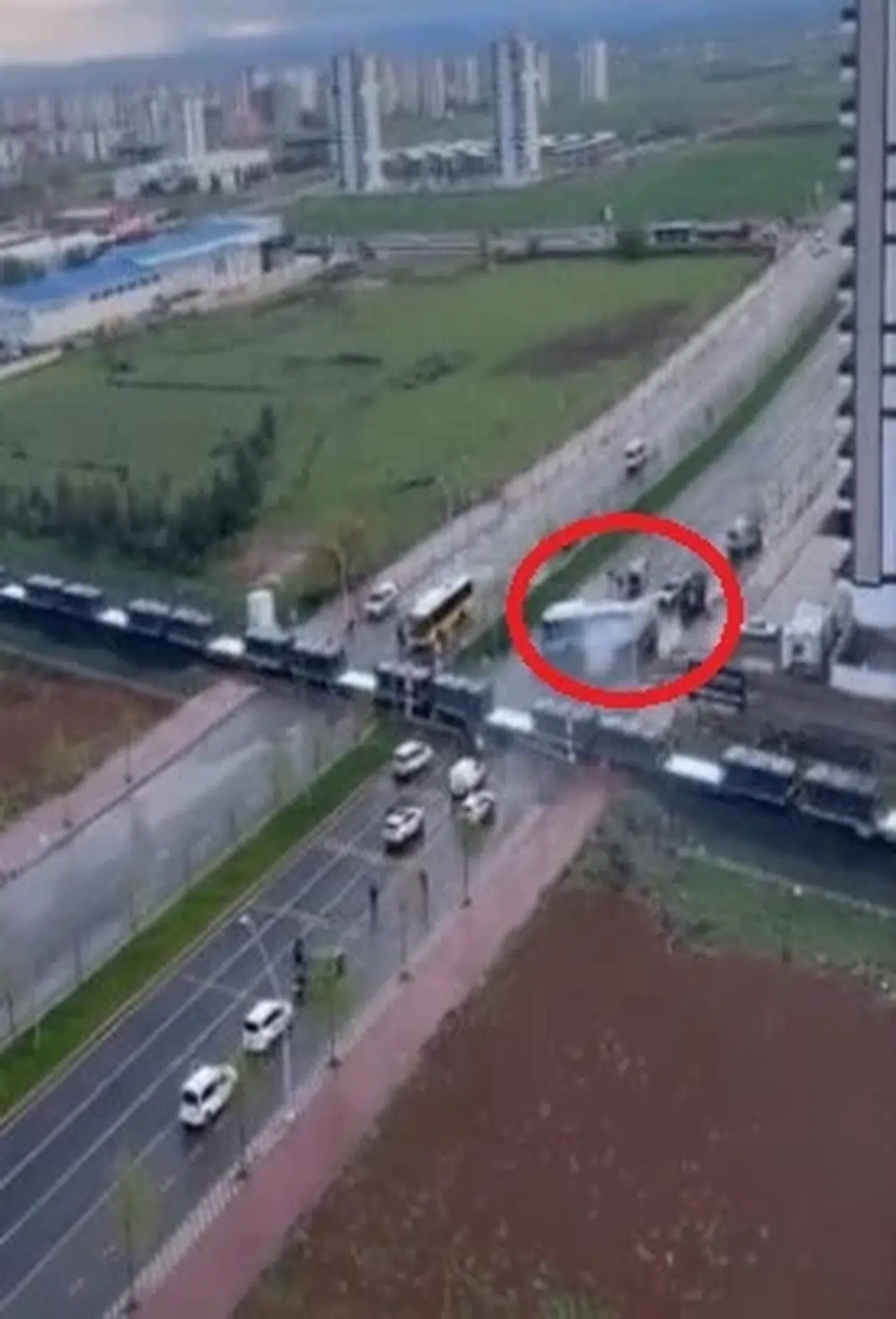 Kaza, sabah saatlerinde Kayapınar ilçesi Mezopotamya Bulvarı’ndaki hemzemin geçitte meydana geldi. Diyarbakır'dan Mardin Mazıdağı ilçesine giden yük treni, bariyerleri kapalı iken hemzemin geçitten geçmeye çalışan İ.K. idaresindeki 21 ANN 993 plakalı belediye otobüsüne çarptı. Kazada ölen ya da yaralanan olmazken, otobüsten dumanlar yükselmeye başladı. İhbar üzerine kaza yerine itfaiye ve polis ekipleri sevk edildi. İtfaiye ekiplerinin soğutma çalışması yaptığı otobüs, çekiciyle bulunduğu yerden kaldırıldı.