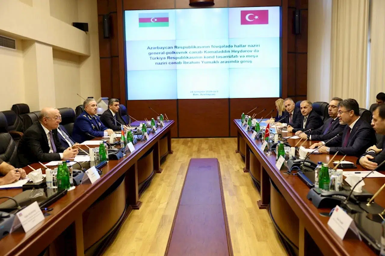 AZERBAYCAN, (DHA)- TARIM ve Orman Bakanı İbrahim Yumaklı, Azerbaycan temasları kapsamında Fevkalade Haller Bakanı Kemaleddin Haydarov ile görüştü.