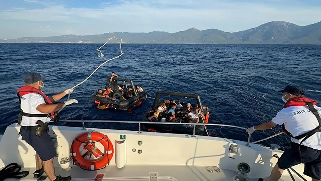 Tülay AKSAY / KUŞADASI (Aydın), (DHA)AYDIN'ın Kuşadası ilçesi açıklarında, can salları içerisinde Yunanistan unsurlarınca Türk karasularına geri itildiği belirlenen 11'i çocuk 37 kaçak göçmen Türk Sahil Güvenlik ekipleri tarafından kurtarıldı.