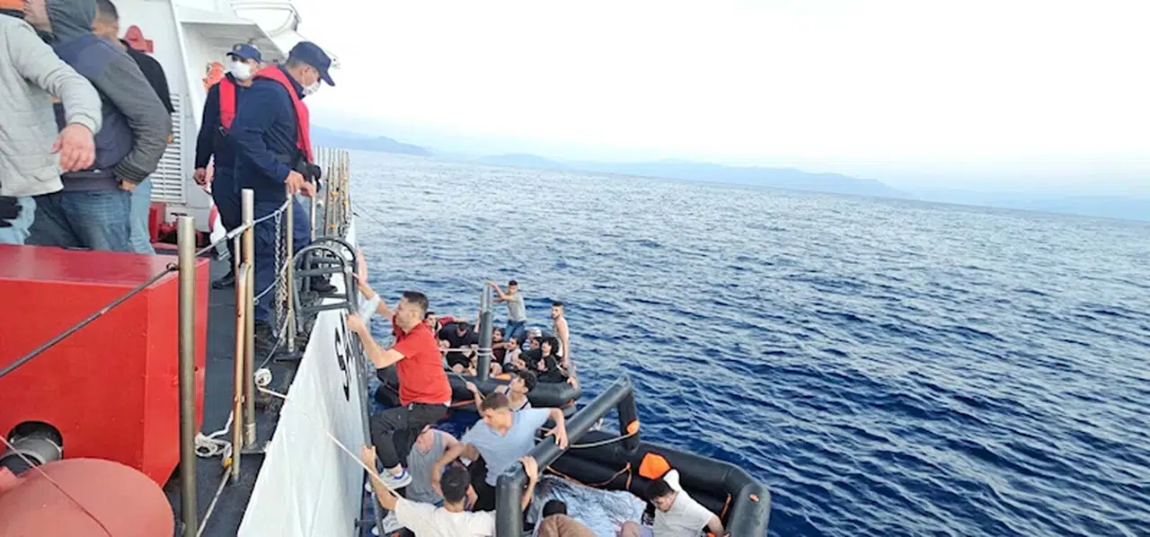 Sahil Güvenlik Komutanlığı, 13 Ekim'de saat 07.05'te, Marmaris açıklarındaki 2 can salı içinde kaçak göçmenler olduğu bilgisini aldı. Bölgeye ulaşan ekipler, Yunanistan unsurları tarafından Türk karasularına geri itilen 9'u çocuk 48 kaçak göçmeni kurtardı. Kıyıya çıkarılan kaçak göçmenler, Muğla İl Göç İdaresi Müdürlüğü'ne teslim edildi. (DHA)