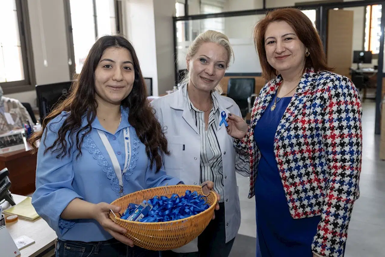 MANİSA, (DHA)-MANİSA'nın Yunusemre ilçesi Belediyesi çalışanları, otizme dikkat çekmek amacıyla anlamlı bir etkinliğe imza atarak bayram sonrası ilk mesai gününde mavi kurdelelerle görev yaptı.