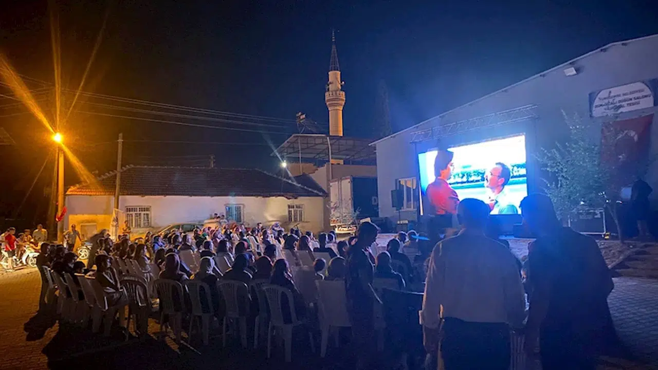 MANİSA, (DHA)-MANİSA'nın Yunusemre Belediyesi, kırsal mahalleleri sanatla buluşturduğu Yuntdağı Sanat Günleri kapsamında ilk açık hava sinema etkinliğini Osmancalı Mahallesi'nde düzenledi.