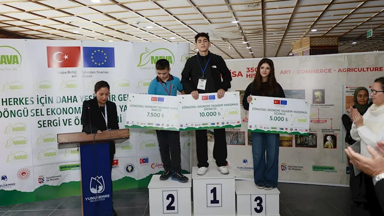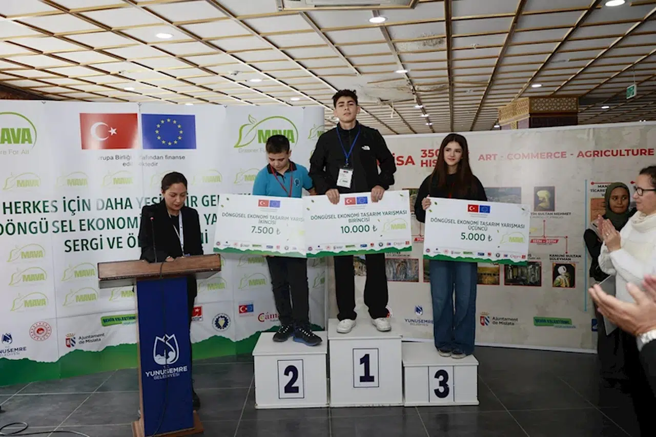 MANİSA, (DHA)-TÜRKİYE ile Avrupa Birliği (AB) Arasında Şehir Eşleştirme II Programı kapsamında hibe alan 'MAVA Herkes İçin Daha Yeşil Bir Gelecek Projesi' çerçevesinde Yunusemre ilçesindeki liseler arasında gerçekleştirilen Döngüsel Ekonomi Tasarım Yarışması Sergisi törenle açıldı. Yarışmada dereceye öğrenciler de ödüllerini aldı.