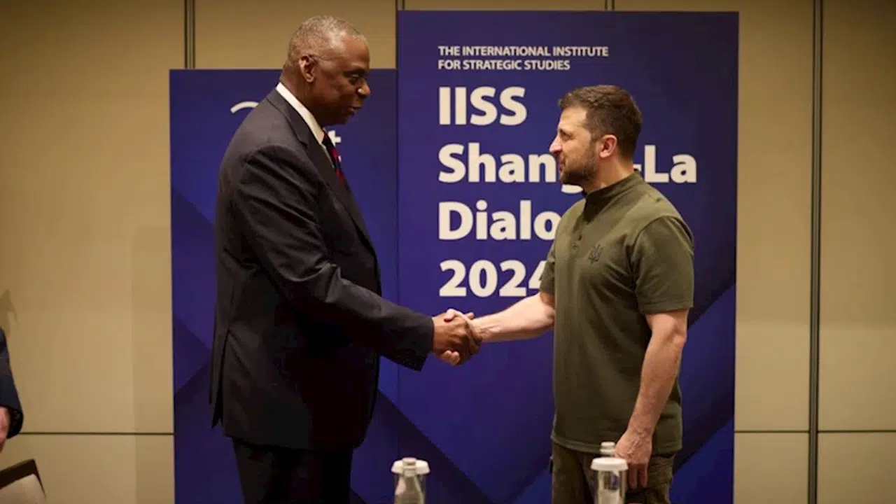 Vahdet AYAZ, (DHA)- Ukrayna Devlet Başkanı Volodimir Zelenski, ABD Savunma Bakanı Lloyd Austin ile Singapur’da düzenlenen Shangri-La Diyalog Zirvesi marjında bir araya geldi. Austin, ABD’nin Ukrayna’ya askeri desteğinin süreceğini belirtti. Zelenski ise şu ana kadarki destekler konusunda teşekkür etti.