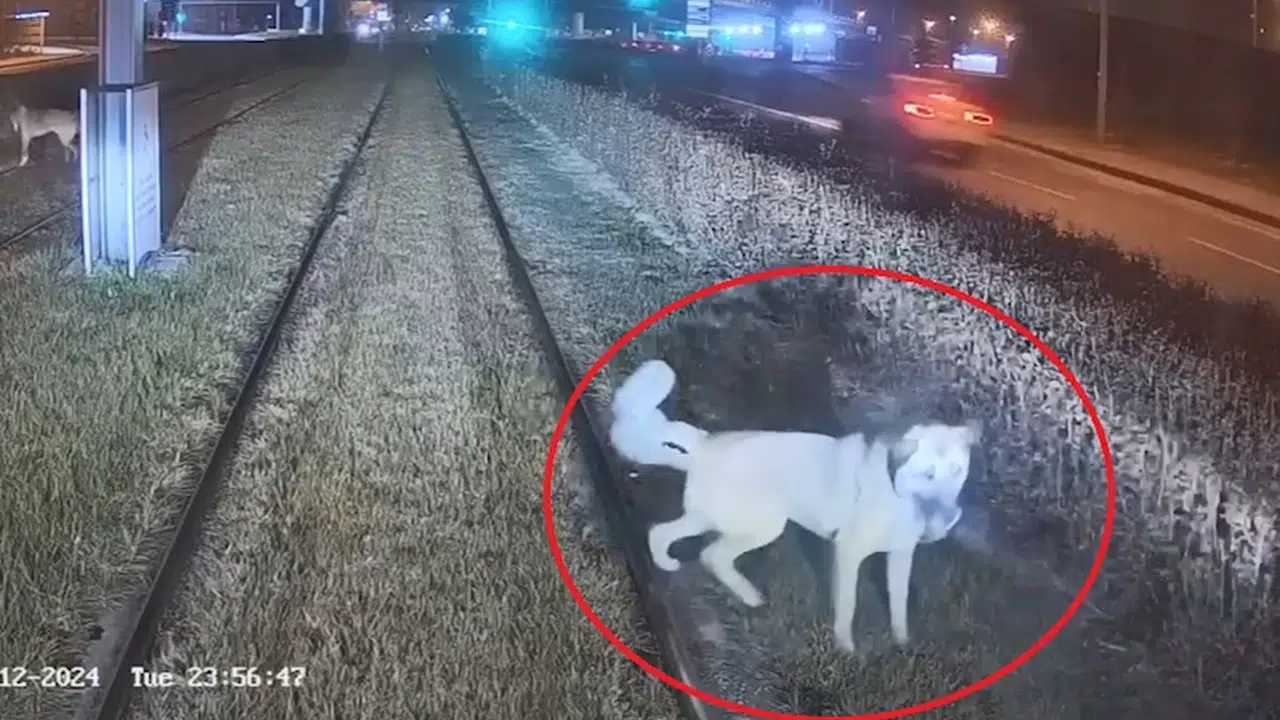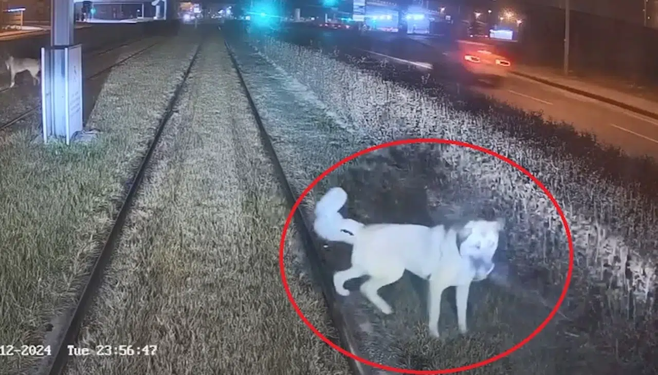 Furkan KAVUKLU/KAYSERİ, (DHA)- KAYSERİ'de tramvay raylarına zincirle bağlanmış köpek, vatmanın dikkati sayesinde kurtarıldı; o anlar kameraya yansıdı.