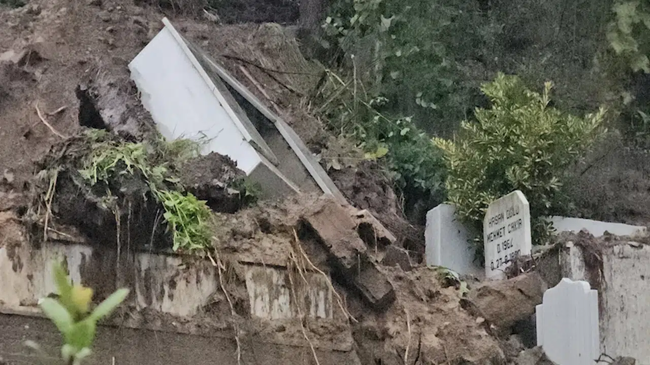 Zonguldak’ta 48 saattir etkisini sürdüren yağışın ardından kentte yaşanan olumsuzluklar devam etti. Kozlu sahil yolunda zaman zaman büyük su birikintileri oluştu. Çatalağzı beldesindeki mezarlıkta heyelan meydana geldi. 10 dolayında mezarın toprakla birlikte kaydığı, bazılarının kırıldığı görüldü. Mezarların hasar gördüğünü öğrenen bazı vatandaşlar bölgeye gelerek yakınlarının mezarlarını kontrol etti. Kilimli ilçesinde ise bir evin istinat duvarı, ağaçla beraber yolun üstüne düştü. Ekipler yolu açmak için çalışma başlatırken trafik kontrollü olarak sağlandı.