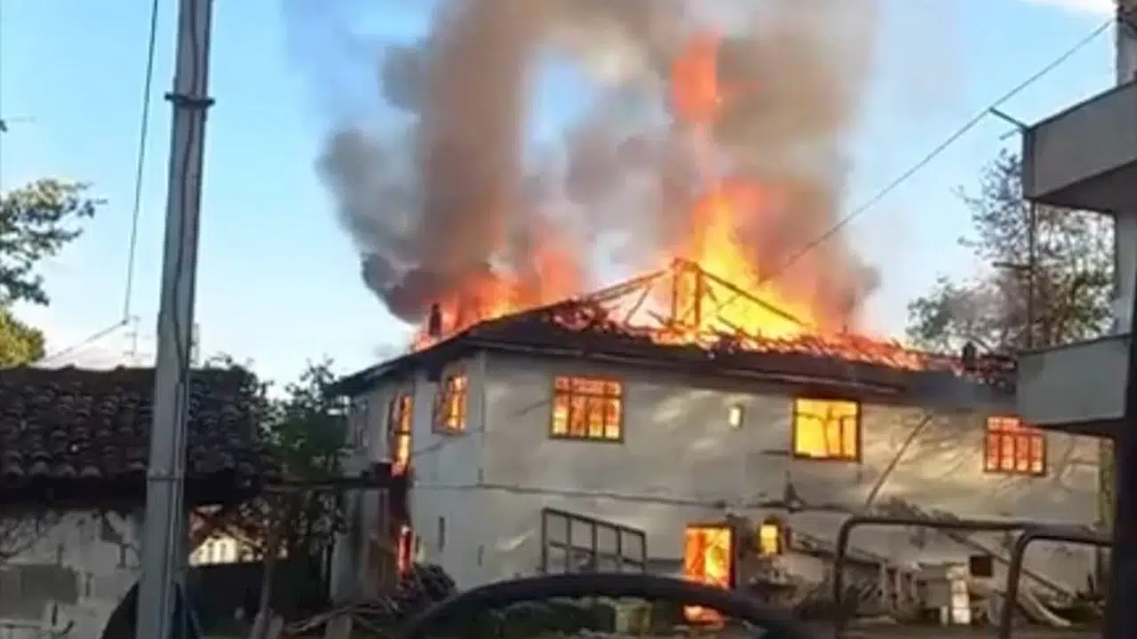 Zonguldak'ta 2 katlı ev alev alev yandı