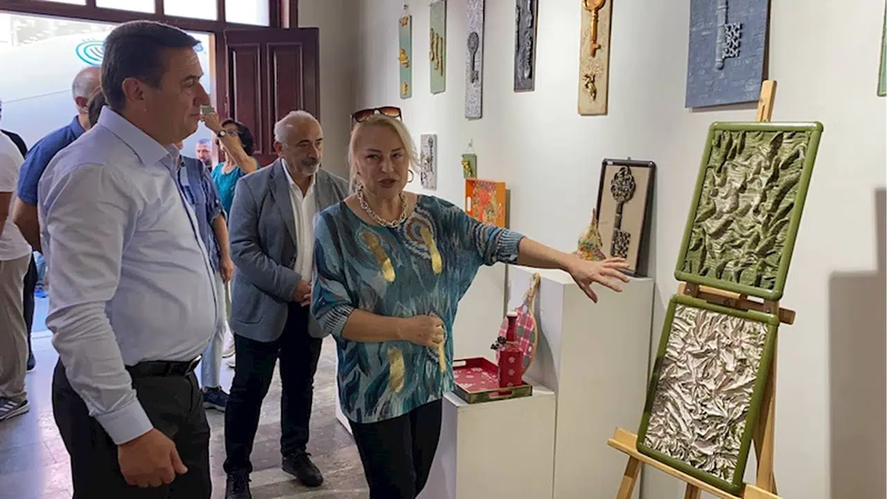 Erdem, serginin açılmasından duyduğu memnuniyeti ifade ederek, sanatçı Adalet Ertürk'ten eserler hakkında bilgi aldı, sergiyi gezdi.