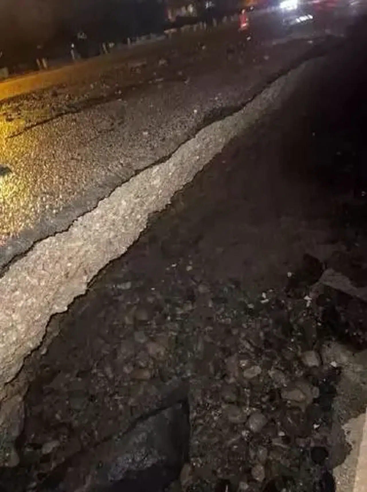 Ekipler, uyarıcı levhalar yerleştirdikleri bölgede güvenlik önlemi alırken, ulaşım da tek şeritten kontrollü olarak sağlanıyor.