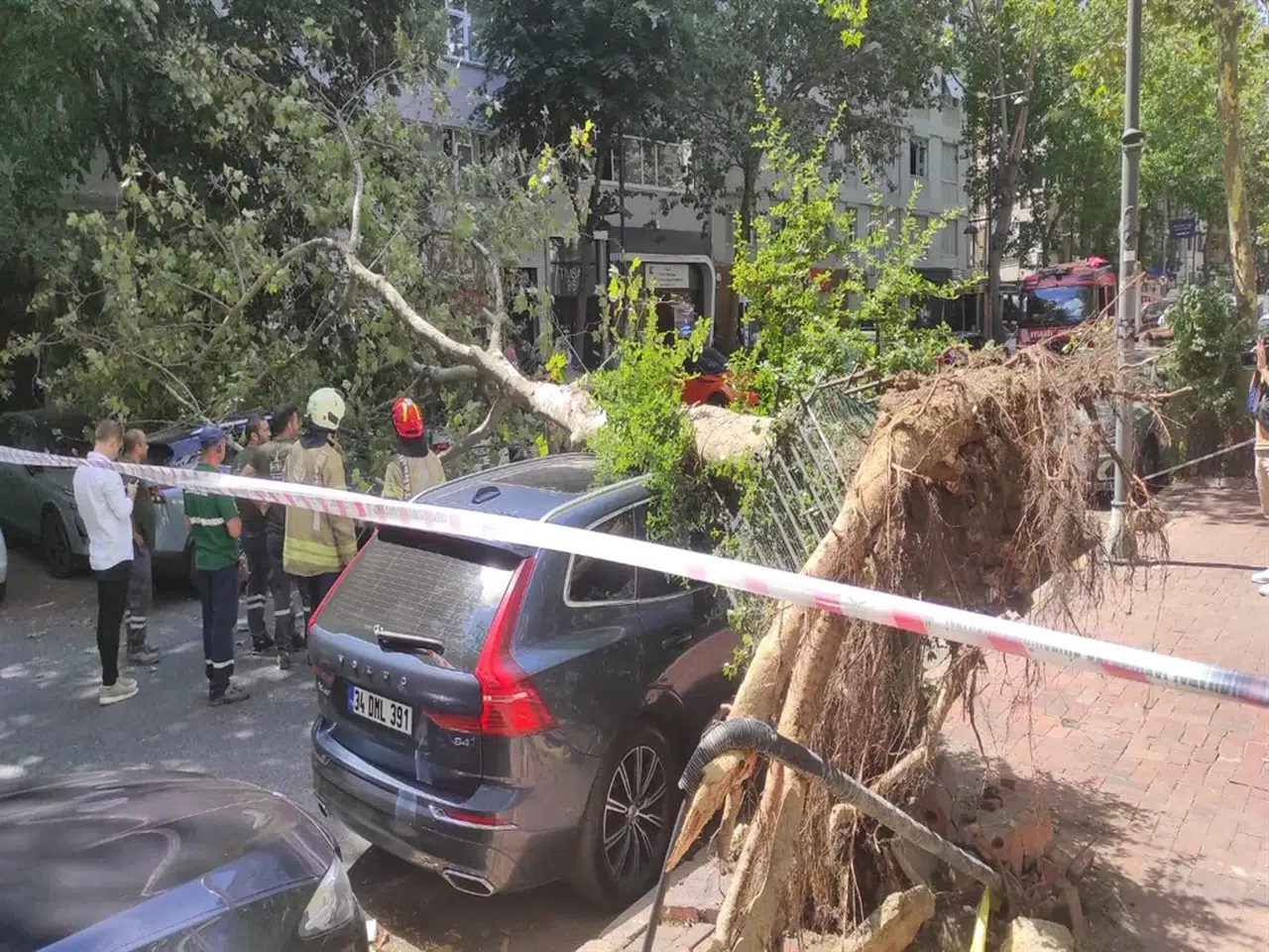 ŞİŞLİ'de kaldırımdaki çınar ağacı park halindeki araçların üzerine devrildi. Ölen ya da yaralananın olmadığı olayda 2 cip zarar gördü.
