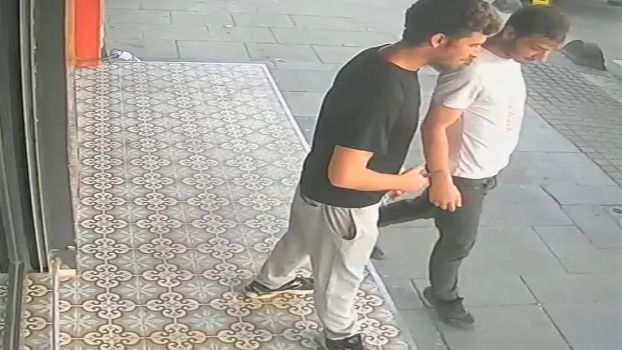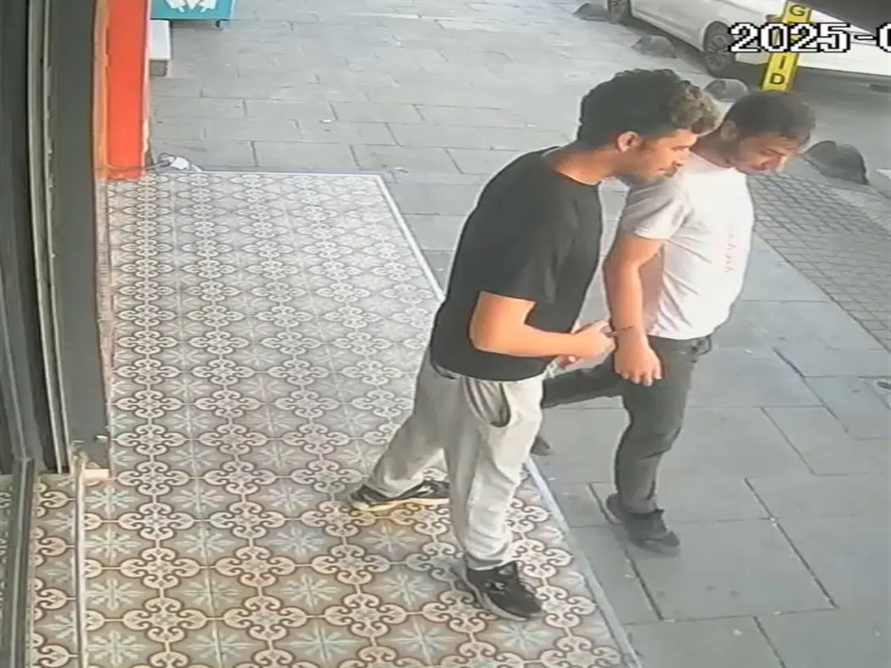 SULTANGAZİ’de iki kardeşten biri dışarıda beklerken diğeri, iş yerinde bulunan çalışanın telefonunu arama yapmak için ödünç istedi. Kardeşlerden biri telefondaki hattı çıkardı dşiğeri ise dışarı bekledi. Telefonu alan şüpheli daha sonra dışarı çıkarak kardeşiyle olay yerinden uzaklaştı. O anlar güvenlik kamerası görüntülerine yansıdı.