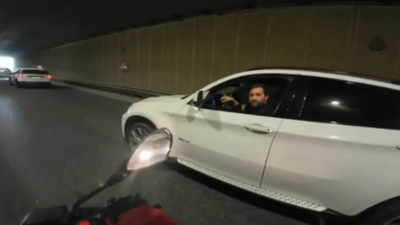 Olay, dün saat 16.00 sıralarında TEM Otoyolu'nun Sultangazi mevkiinde meydana geldi. İddiaya göre, seyir halindeyken makas atan otomobil sürücüsüne, arkadan gelen motosikletli tepki gösterdi. Motosikletli, Cumhuriyet Mahallesi tünel girişinde korna çalarak otomobili durdurdu. Otomobil sürücüsüne insanların hayatını tehlikeye attığını söyleyen motosikletli ile sürücü arasında tartışma yaşandı. Otomobil sürücüsü motosikletliye, 'Sen polis misin' diye karşılık verdi. İkili arasında yaşanan tartışma motosikletlinin kask kamerasına yansıdı.