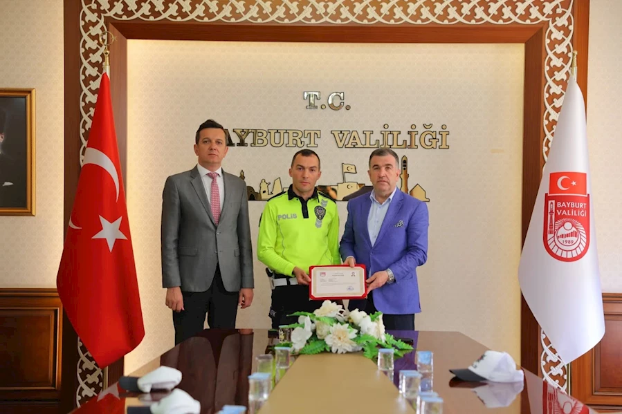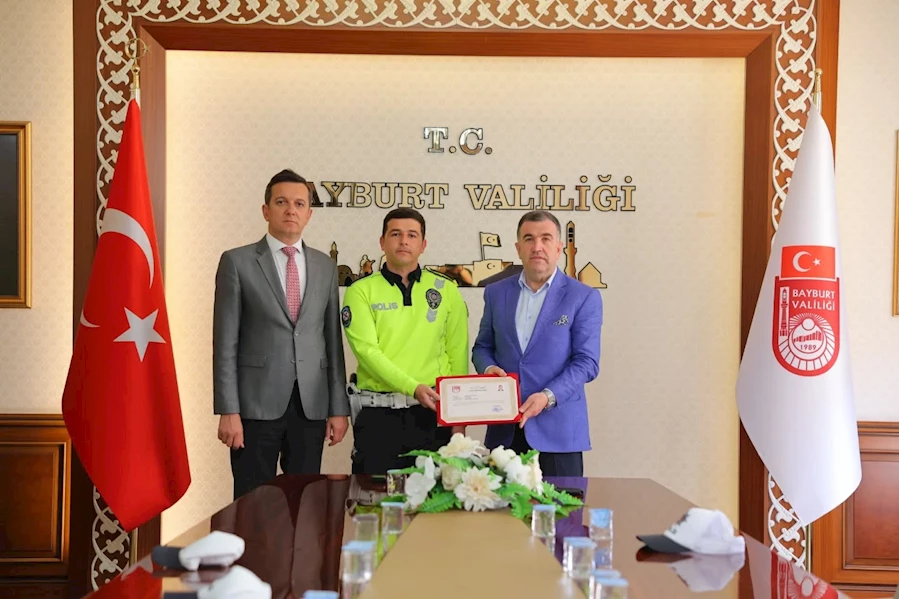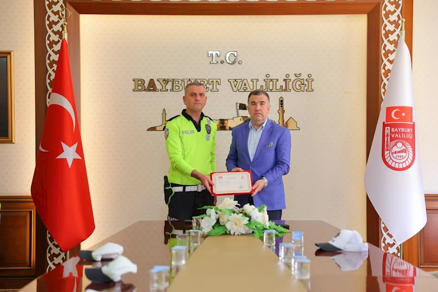 Karayolu Trafik Haftası etkinlikleri kapsamında Bayburt’ta, trafik güvenliği alanında özveriyle görev yapan emniyet personeli, Bayburt Valisi Mustafa Eldivan tarafından başarı belgeleriyle ödüllendirildi.