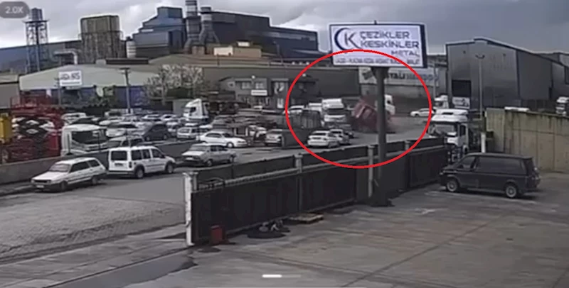 Kaza, dün öğle saatlerinde, Tüysüz beldesi Organize Sanayi Bölgesi'nde meydana geldi. Sürücüsünün ismi öğrenilemeyen hurda yüklü TIR, kavşakta dönüş yaparken kontrolden çıkıp yol kenarında park halindeki araçların üstüne devrildi. Kazada ölen ya da yaralanan olmazken, 3 araçta ise zarar oluştu. Kaza anı, çevredeki iş yerinin güvenlik kamerasına yansıdı. Kazaya ilişkin inceleme başlatıldı. (DHA)