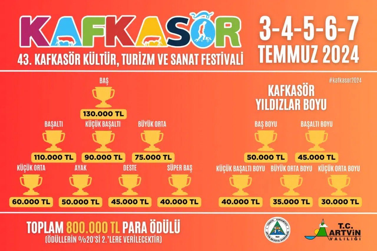 Festivale katılanlar, Artvin’in eşsiz kültürel mirasını ve doğasının güzelliklerini keşfetme fırsatı bulacak. Festival kapsamında düzenlenecek boğa güreşlerinde, arenada kıyasıya mücadele eden boğalar izleyenlere heyecan dolu anlar yaşatacak. Toplamda 800.000 TL ödülün dağıtılacağı boğa güreşleri, festivale olan ilgiyi artıracak ve rekabeti daha da kızıştıracak.