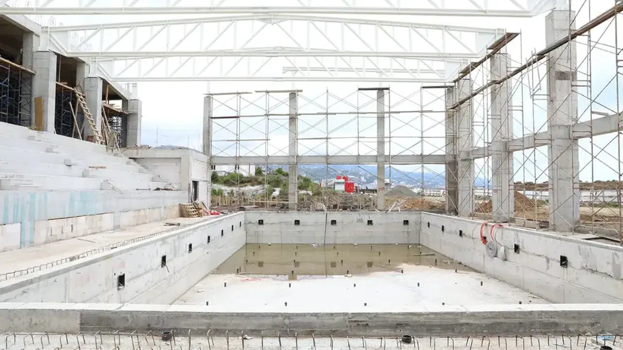Akçaabat Belediyesi, Yaylacık Sahili'nde hayata geçirdiği vizyon projelerinden biri olan Yarı Olimpik Kapalı Yüzme Havuzu'nun inşaatında büyük ilerleme kaydediyor. 15 Eylül 2023'te gerçekleştirilen temel atma töreninden bu yana geçen sekiz ayda, havuzun kaba inşaatı %90 oranında tamamlandı.