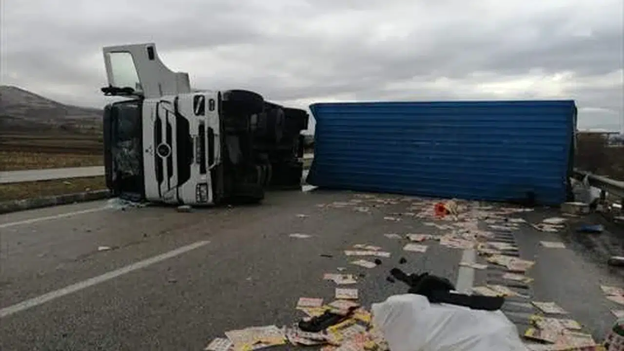 Amasya'da tırın devrilmesi sonucu 2 kişi yaralandı