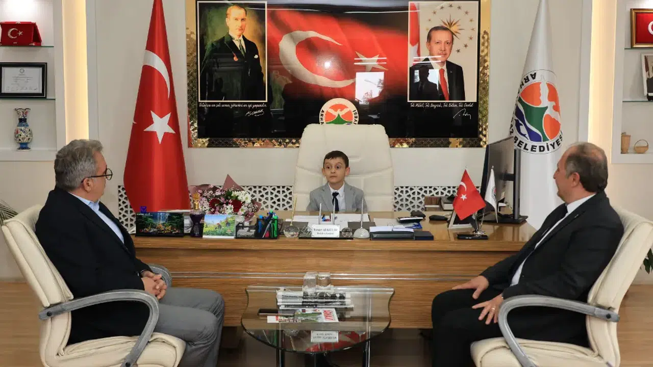 Başkan Turgay Ataselim’in makamında gerçekleşen törende, küçük başkana arkadaşları Çakır Gezen, Ayaz Özdemir ve Yağmur Ada Güney eşlik etti. Okul müdürleri gözetiminde gerçekleştirilen ziyarette Mahfuz Kazmaoğlu, belediyenin birim amirlerinden bilgi alarak başkanlık görevini büyük bir ciddiyetle üstlendi.