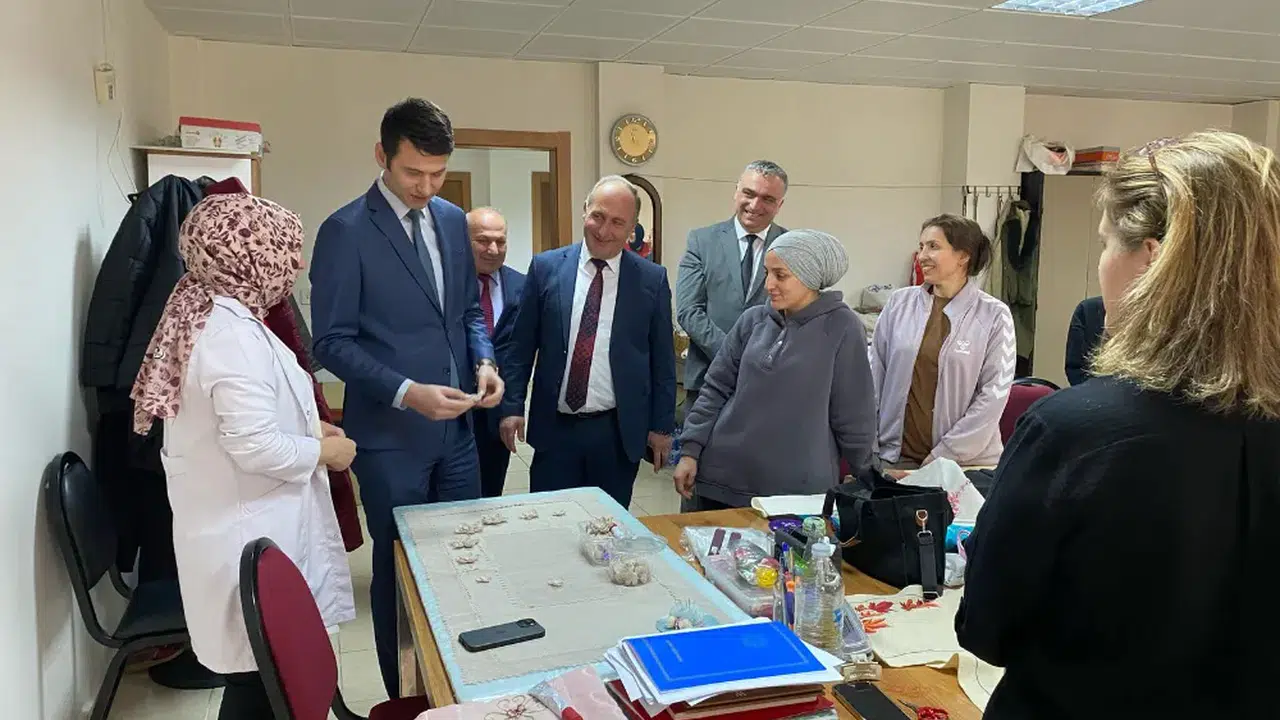 Kaymakam Çimşir ve Başkan Ataselim, kursiyerlerle bir araya gelerek hem üretim süreçleri hakkında bilgi aldı hem de emekleri için teşekkür etti. Merkezin eğitim programları ve katılımcı sayıları hakkında yetkililerden bilgi alan heyet, halk eğitiminin toplumsal farkındalık ve beceri gelişimindeki önemine vurgu yaptı. Protokol, bu tür faaliyetlerin artarak devam etmesi için desteklerinin süreceğini ifade etti.