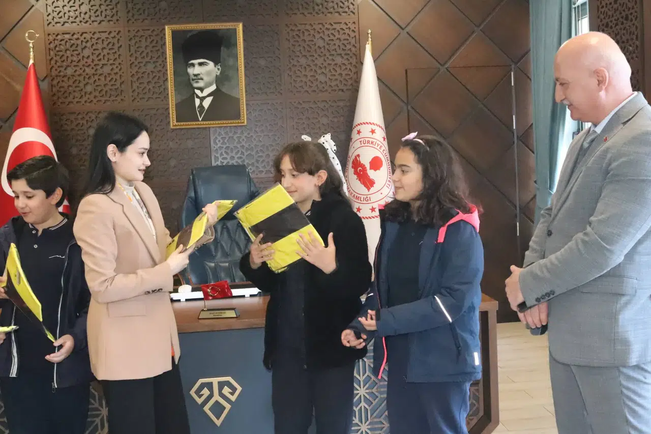 23 Nisan Ulusal Egemenlik ve Çocuk Bayramı kutlamaları kapsamında Mehmet Akif Ersoy İlkokulu öğrencileri, İlçe Kaymakamı Şule Demirtaş’ı makamında ziyaret etti.