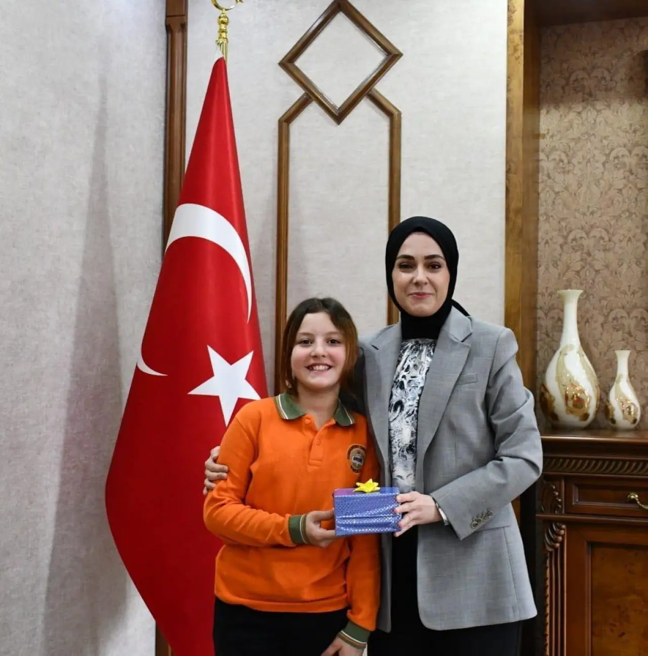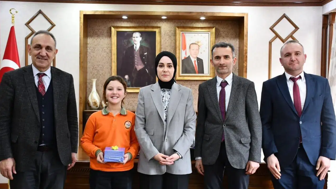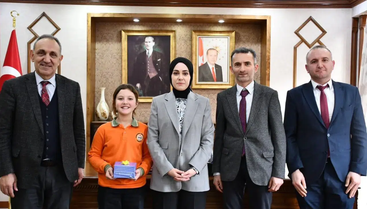 Borçka Kaymakamı Betül Büyükkılıç, “İstiklal Marşı’nı Güzel Okuma Yarışması”nda il birincisi olan Cumhuriyet Ortaokulu 5. sınıf öğrencisi Elif Şeyma Kara’yı makamında kabul etti.