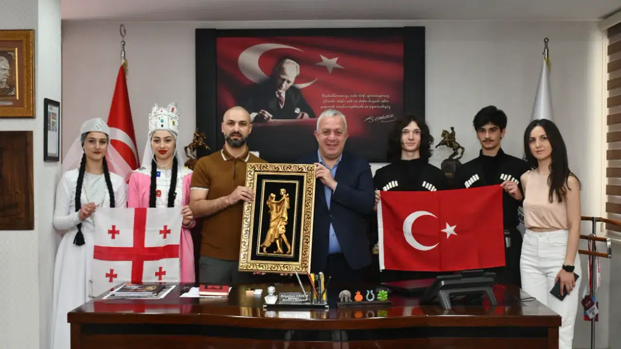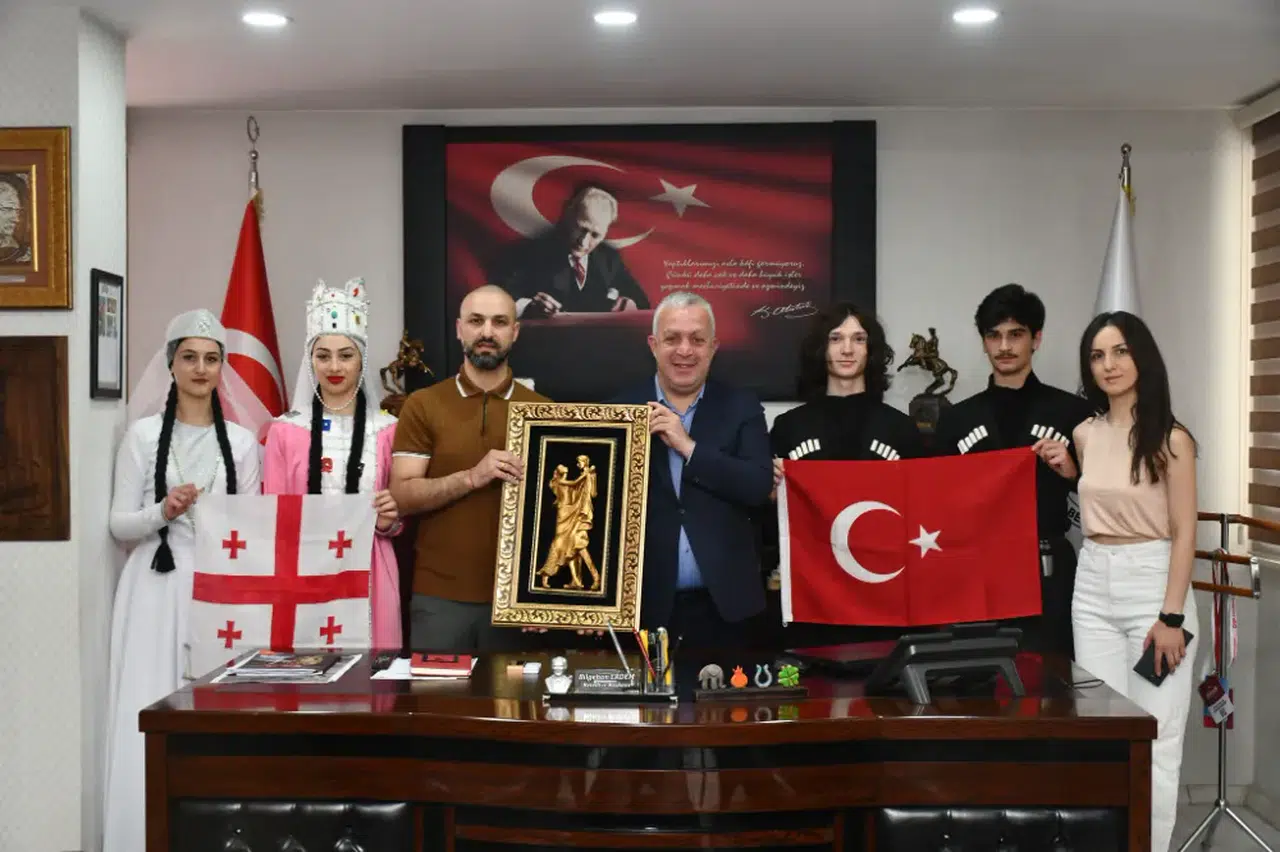 Artvin Belediye Başkanı Bilgehan Erdem, Gürcistan'dan gelen Sapovnela Çocuklar Örnek Halk Folklor Grubunu ağırladı.