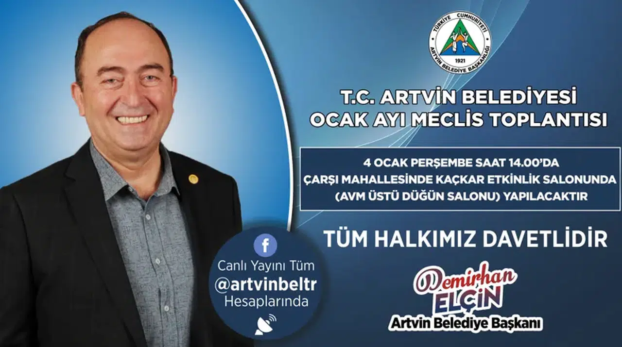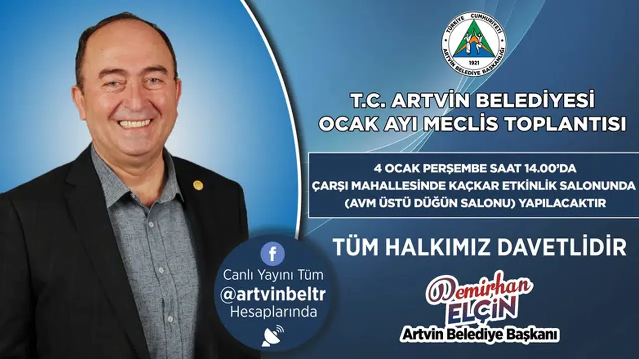 Artvin Belediye Başkanı Demirhan Elçin, toplantıda vatandaşlarla bir araya gelecek ve sorularını yanıtlayacak.