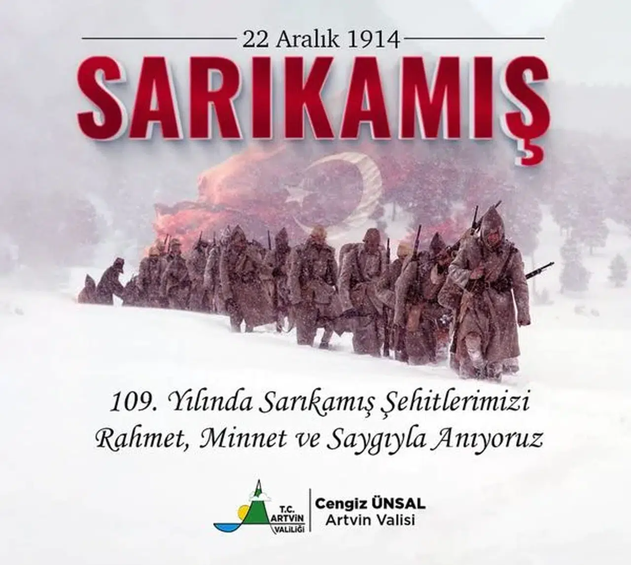 Artvin Valisi Cengiz Ünsal, 22 Aralık 1914'te başlayan Sarıkamış Harekâtı'nın 109'uncu yıl dönümü dolayısıyla düzenlenen anma programında konuştu.