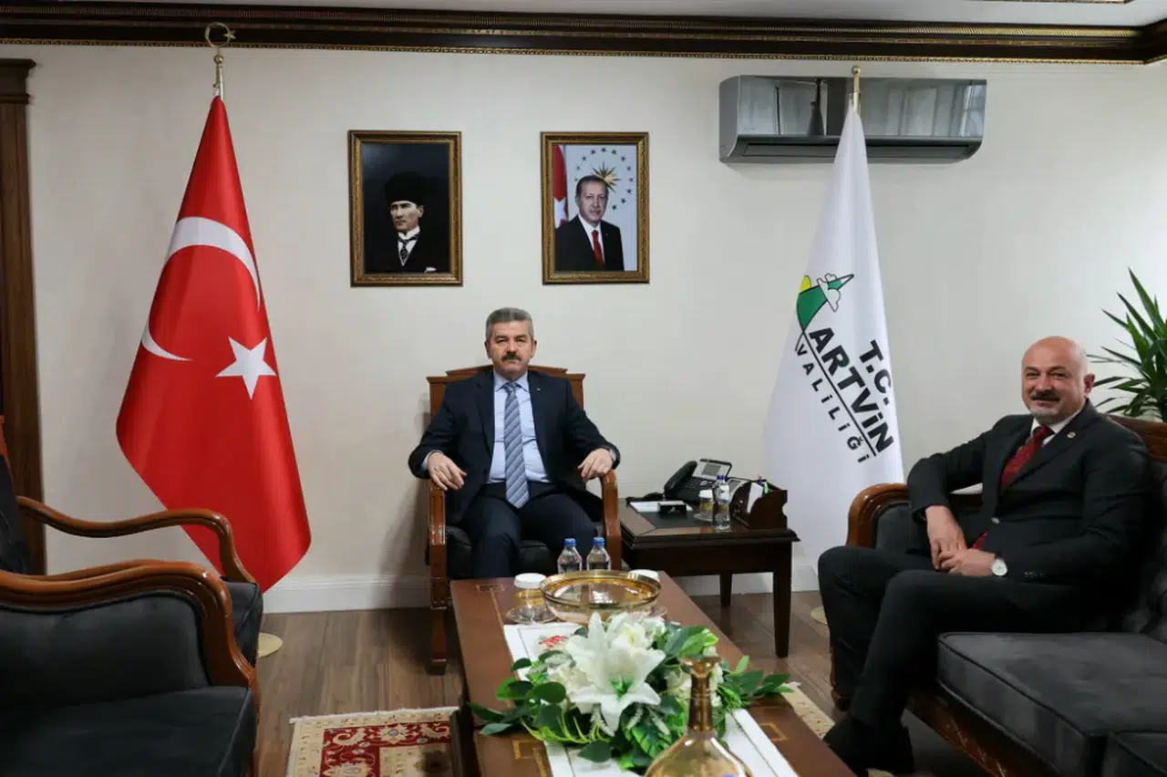 Artvin Valisi Dr. Turan Ergün, hayırlı olsun ziyaretleri kapsamında farklı kurum ve kuruluşların temsilcilerini makamında kabul etti. Bu çerçevede gerçekleştirilen ziyaretlerde, Artvin Valiliği ile şehirdeki çeşitli kurumlar arasındaki iş birliği ve iletişimin güçlendirilmesi adına görüş alışverişinde bulunuldu.