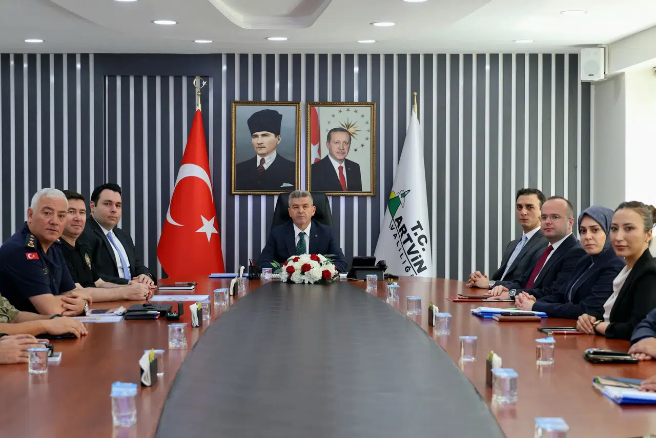 Artvin'de Aylık İl Güvenlik ve Asayiş Koordinasyon Toplantısı, Vali Dr. Turan Ergün başkanlığında gerçekleştirildi. Toplantıda, il genelinde yürütülen güvenlik çalışmaları ve çeşitli konular ele alındı.
