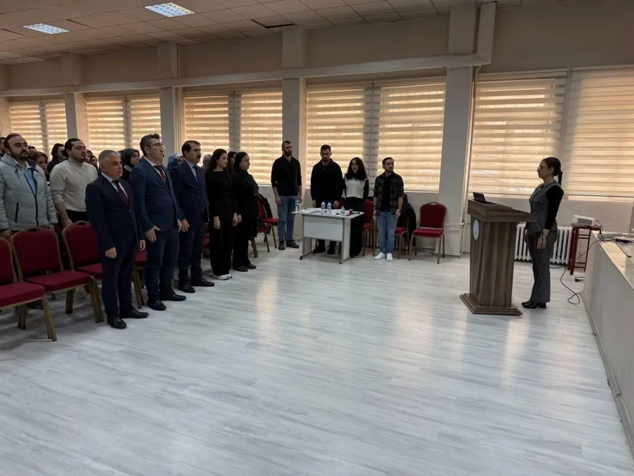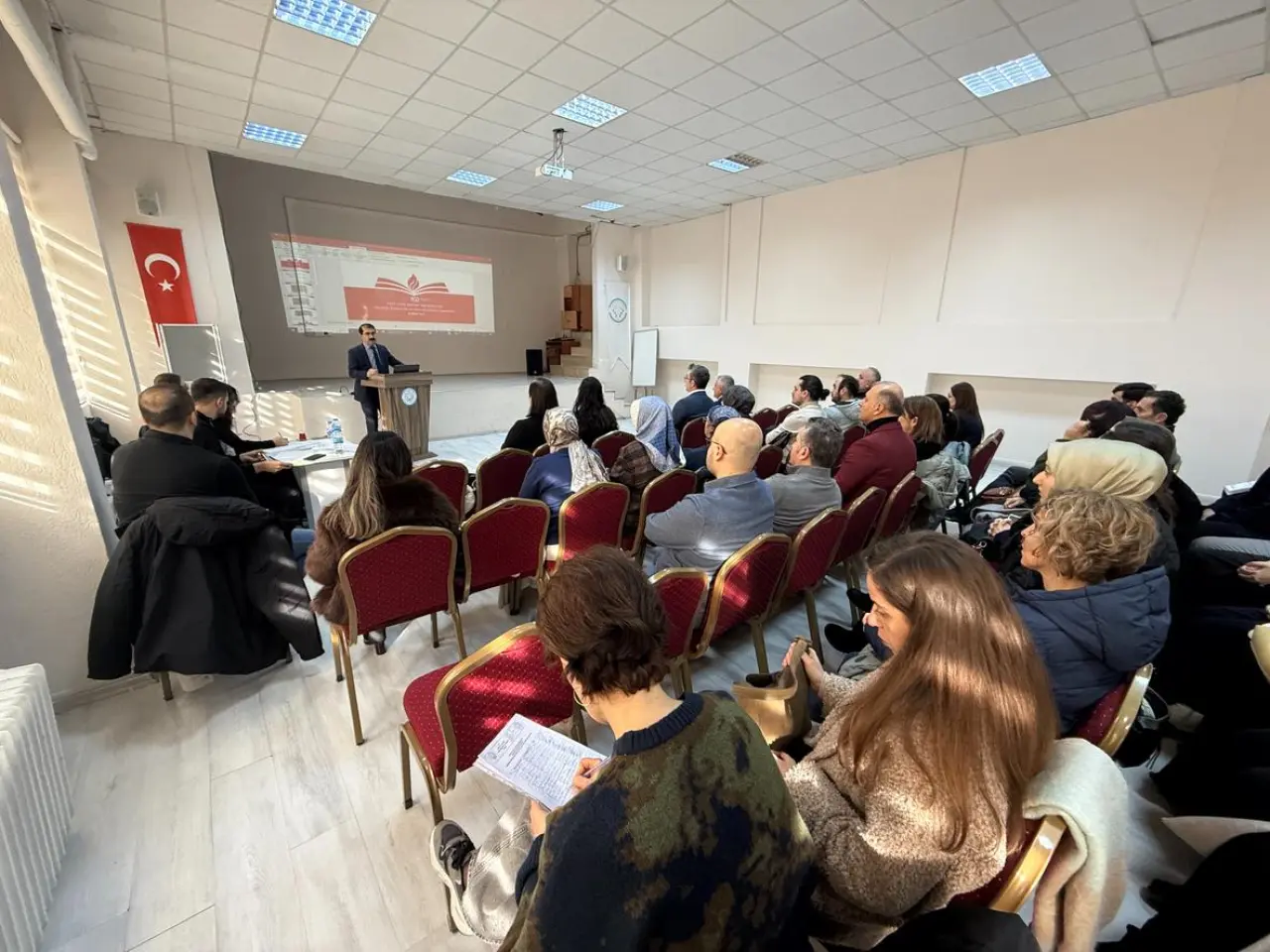 Toplantı, saygı duruşu ve İstiklal Marşı’nın okunmasıyla başladı. Ardından İl Millî Eğitim Müdürü Fahri Acar açılış konuşmasını yaptı.