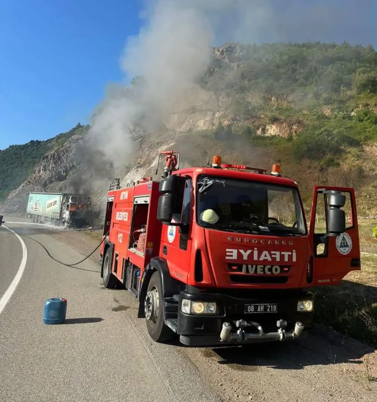 Bugün sabah saatlerinde Artvin'in Borçka Yolu mevkiinin 14. kilometresinde bir tırda çıkan yangın, hem sürücüyü hem de çevredekileri ciddi şekilde endişelendirdi. Meydana gelen yangın, tırın seyir halindeyken meydana geldiği için olayın duyulmasının ardından itfaiye ve acil durum ekipleri hemen bölgeye sevk edildi. Yangına hızlıca müdahale edilmesi sayesinde, yangın kontrol altına alındı.
