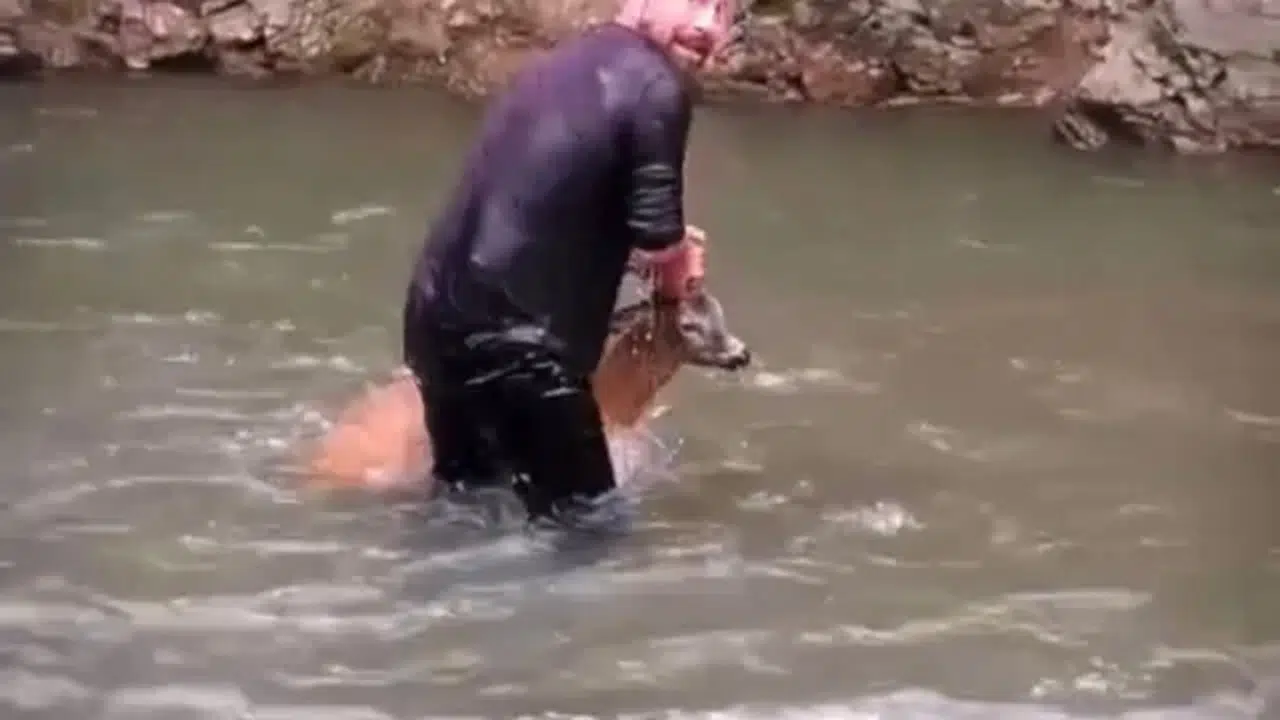 Artvin'de dereye düşen yavru karacayı kurtarma operasyonu kamerada